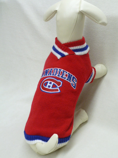 With this ruggedly stylish V-neck sweater decked out with your favorite NHL team, your dog will stride with team spirit. Too bad we still do not offer a version for the human hockey fans!