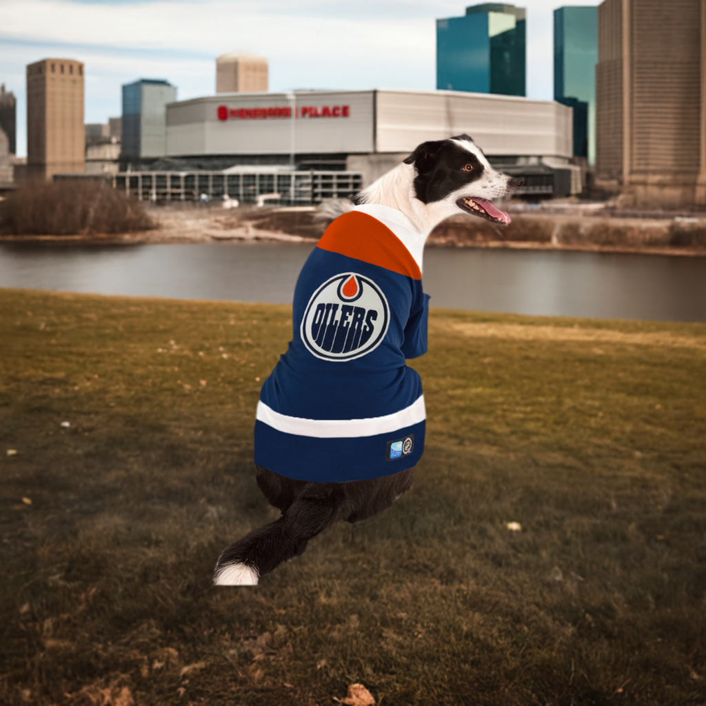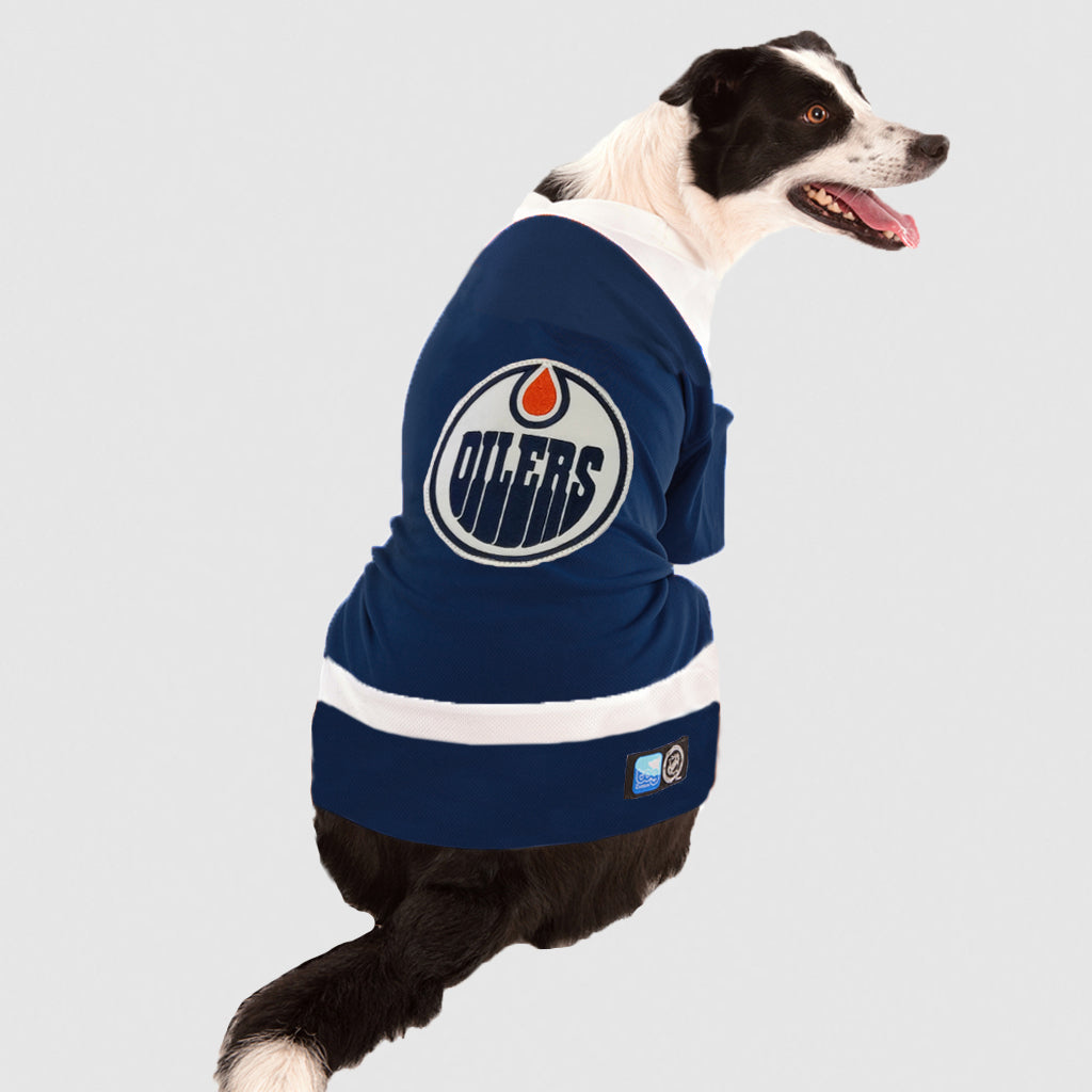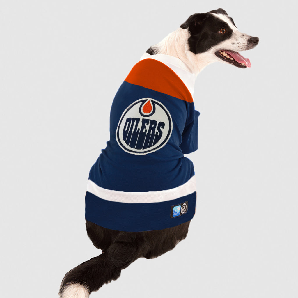 Give your pet its very own Edmonton Oilers jersey on game day and you'll have one proud pup. Lightweight and comfortable with an embroidered Oilers logo, it's a wardrobe essential for all diehard NHL hockey hounds!