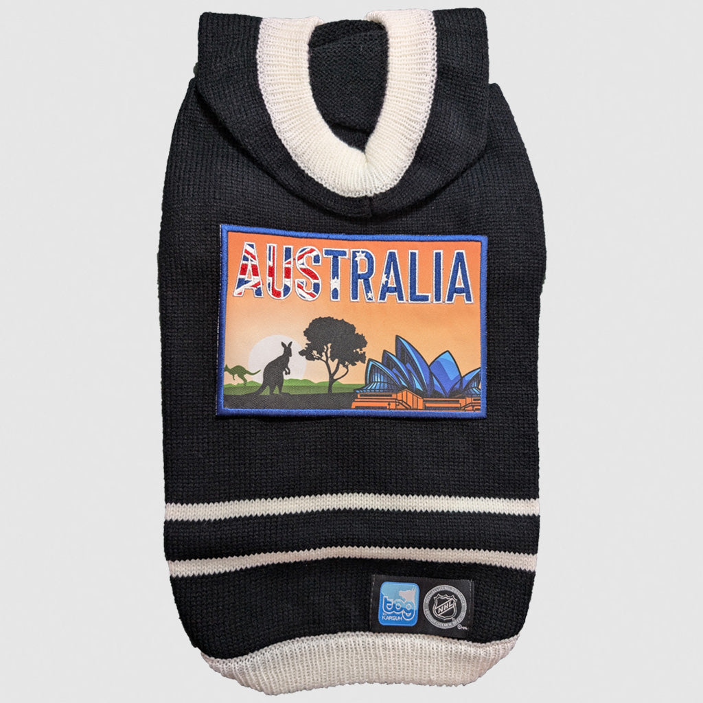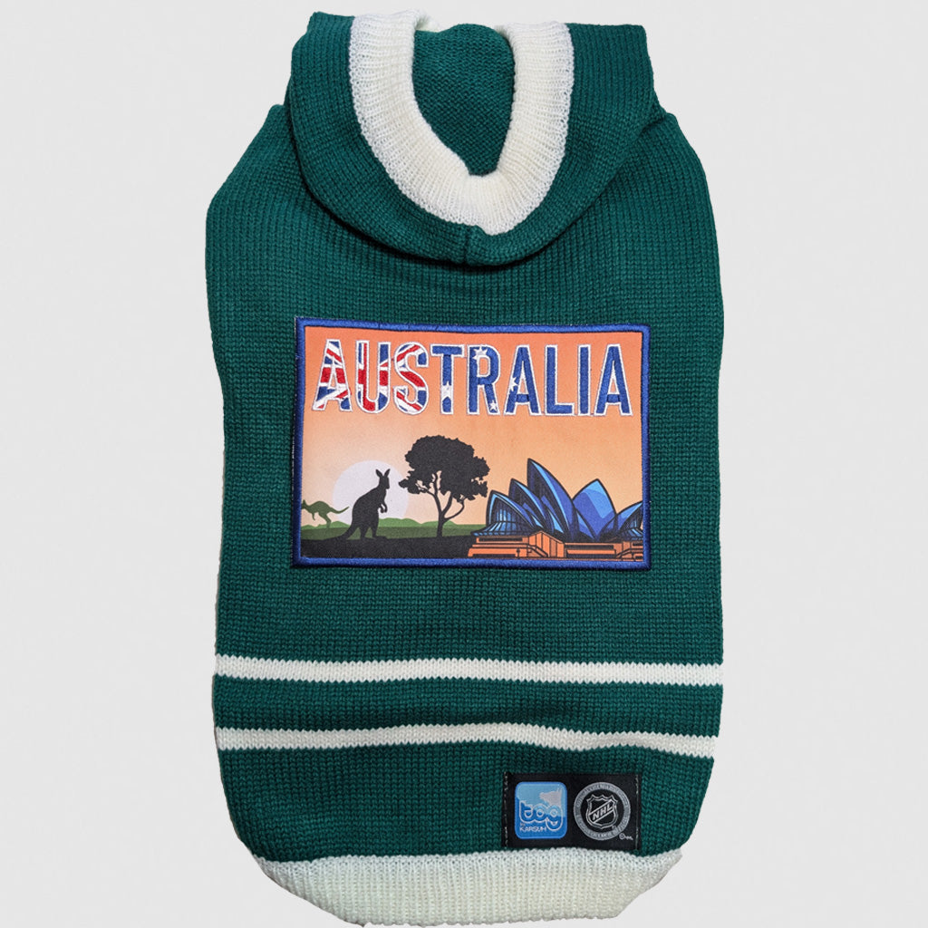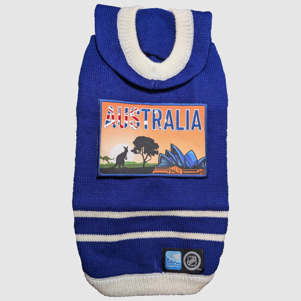 When the weather turns cool, your dog will be warm and cozy in their AUSTRALIA pet sweater. Ruggedly stylish, your pet will be ready for all occasions calling for Australian spirit. Whether it's celebrating Australia Day or showing support for Australian athletes, this sweater is the perfect wardrobe essential for every occasion.