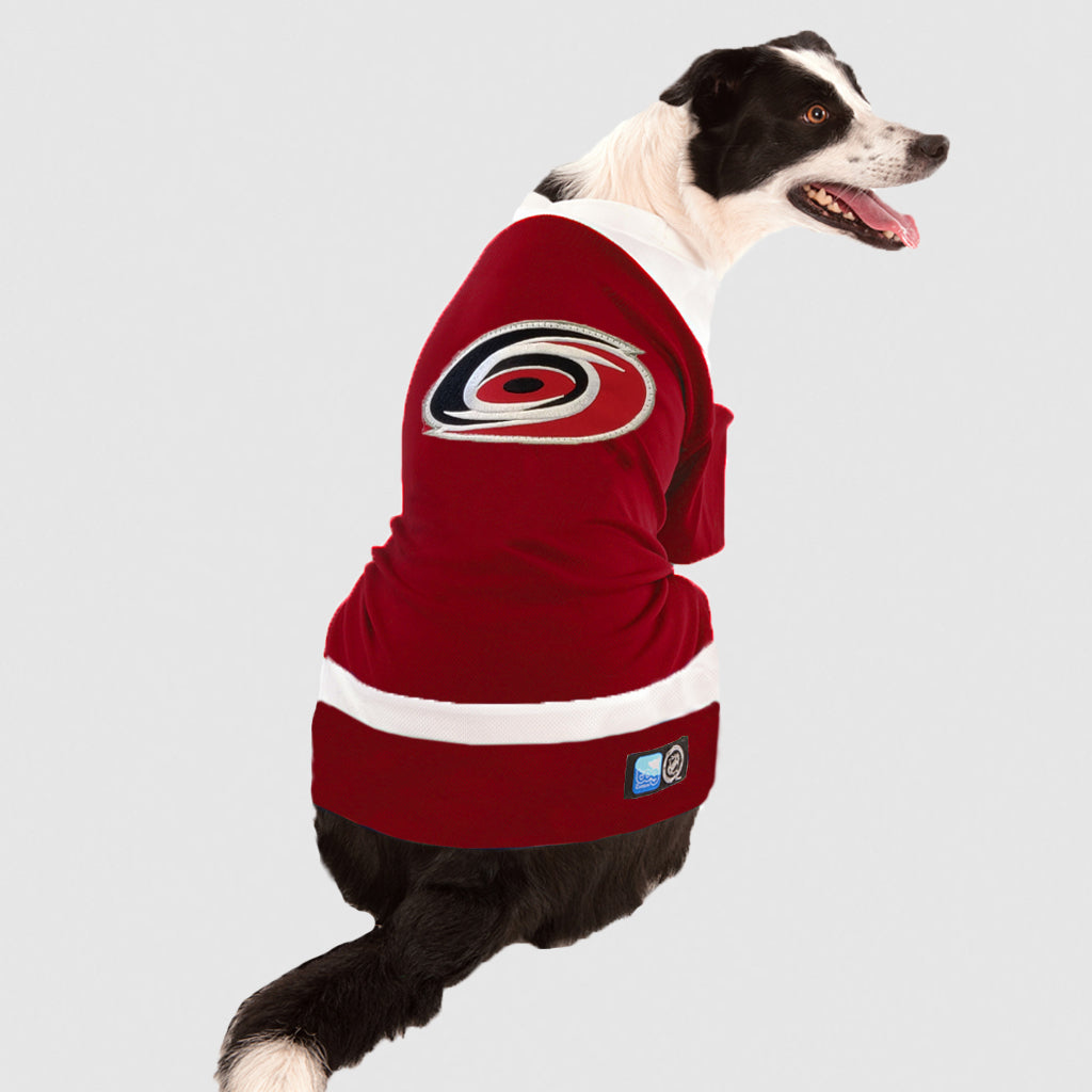 Give your pet its very own Carolina Hurricanes jersey on game day and you'll have one proud pup. Lightweight and comfortable with an embroidered Hurricanes logo, it's a wardrobe essential for all diehard NHL hockey hounds!