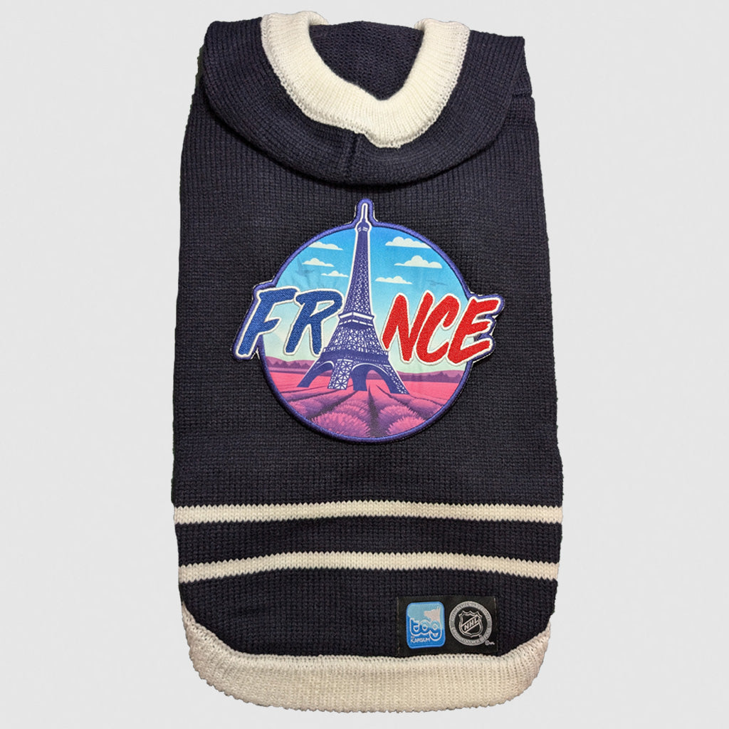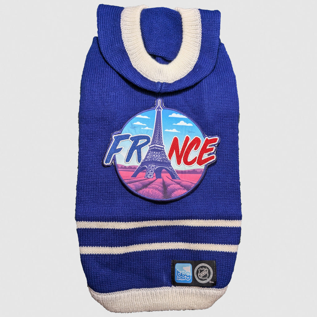 TogpetwearWhen the weather turns cool, your dog will be warm and cozy in their FRANCE pet sweater. Ruggedly stylish, your pet will be ready for all occasions calling for French spirit. Whether it's celebrating Bastille Day or showing support for French athletes, this sweater is the perfect wardrobe essential for every occasion.