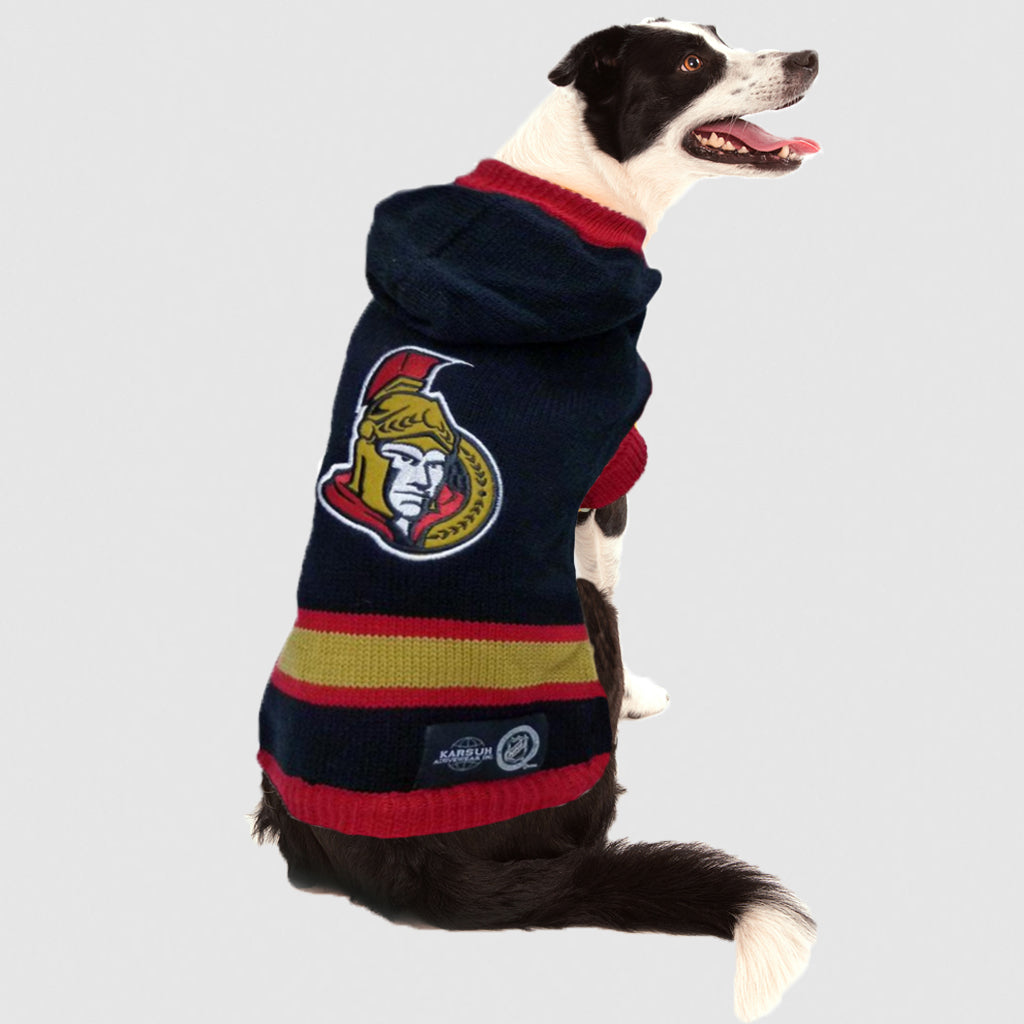 TogpetwearWhen the weather turns cool, your dog will be warm and cozy in their Senators pet sweater. Ruggedly stylish with a quality Ottawa Senators logo embroidered on the back, you may just wish we offered a version for the human hockey fans as well!