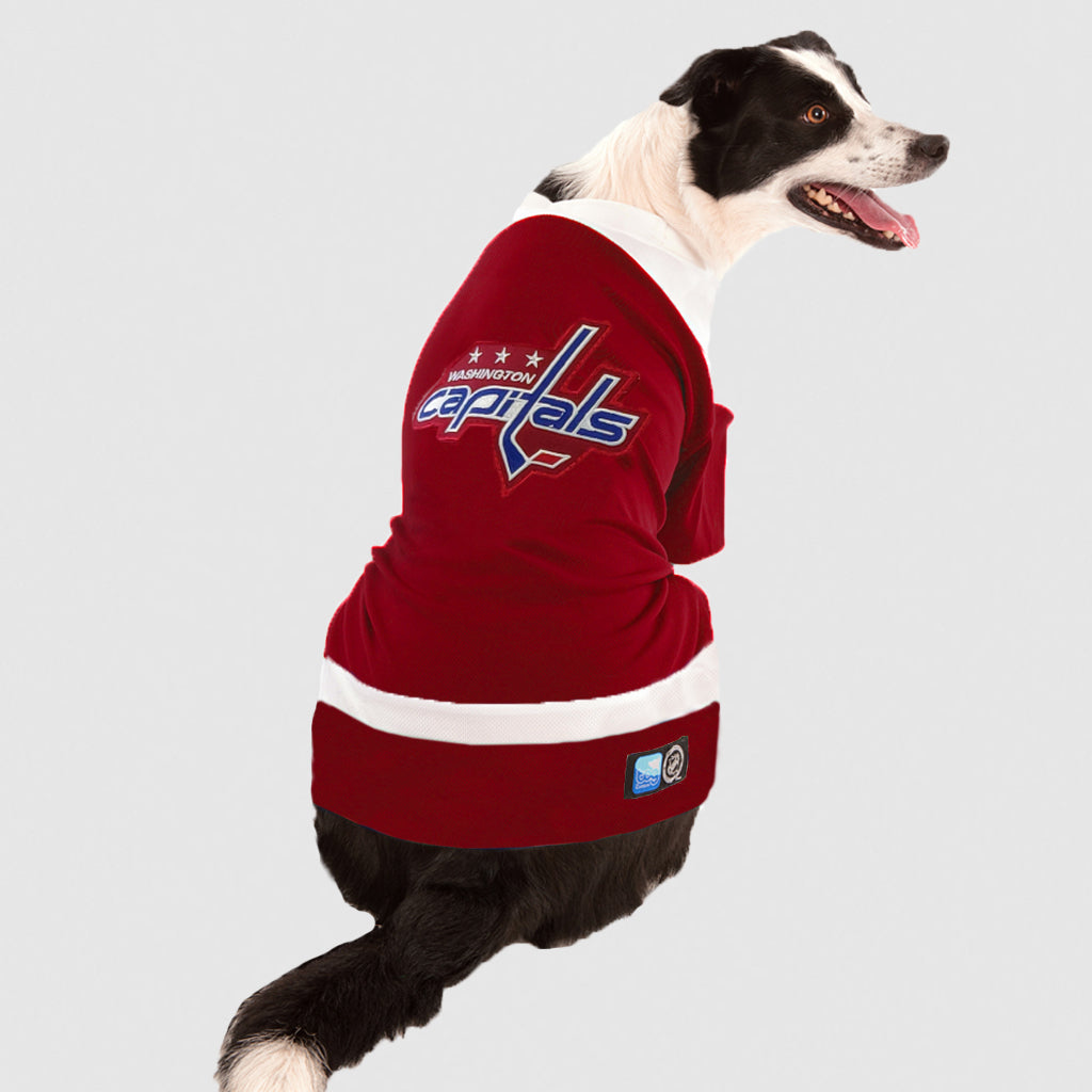 Give your pet its very own Washington Capitals jersey on game day and you'll have one proud pup. Lightweight and comfortable with an embroidered Capitals logo, it's a wardrobe essential for all diehard NHL hockey hounds!