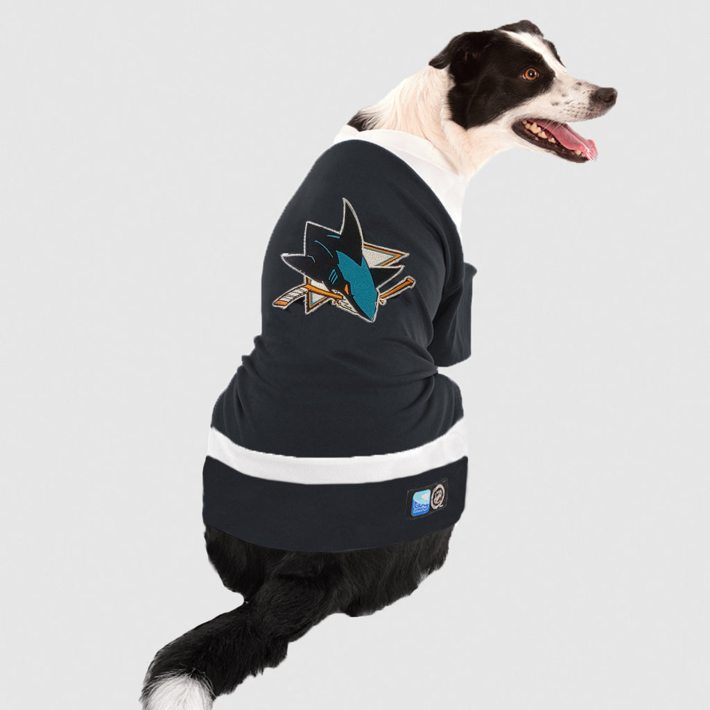 TogpetwearGive your pet its very own San Jose Sharks jersey on game day and you'll have one proud pup. Lightweight and comfortable with an embroidered Sharks logo, it's a wardrobe essential for all diehard NHL hockey hounds!