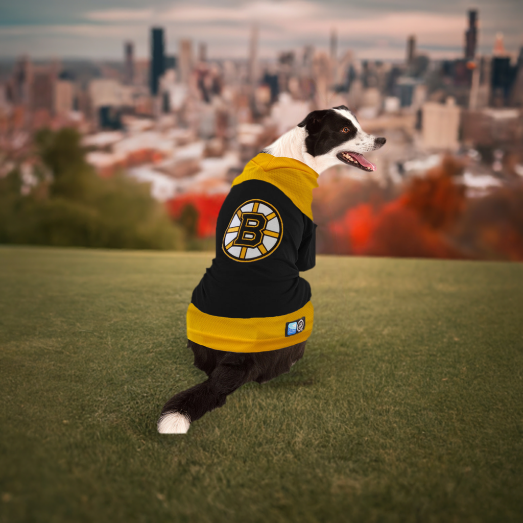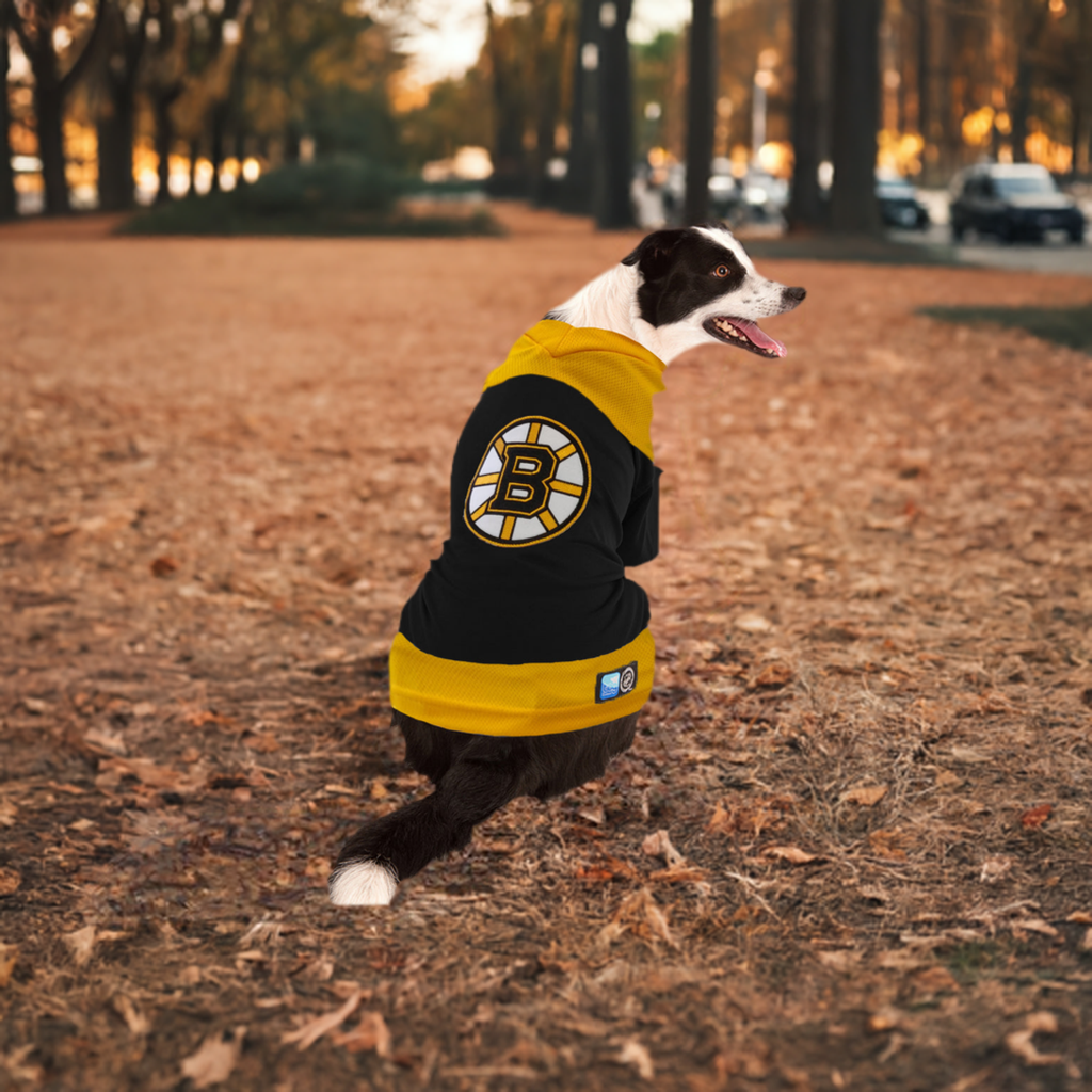 Give your pet its very own Boston Bruins jersey on game day and you'll have one proud pup. Lightweight and comfortable with an embroidered Bruins logo, it's a wardrobe essential for all diehard NHL hockey hounds!