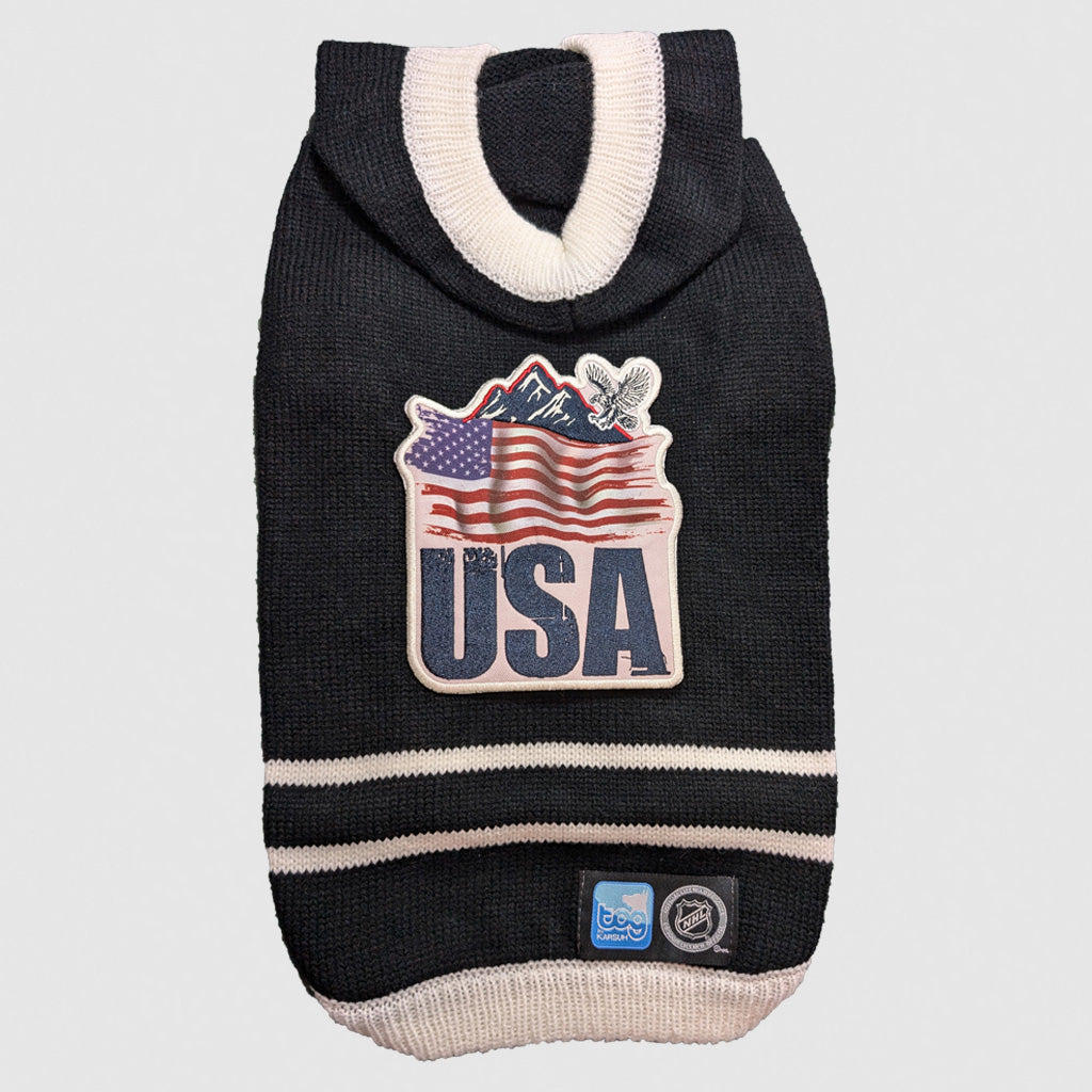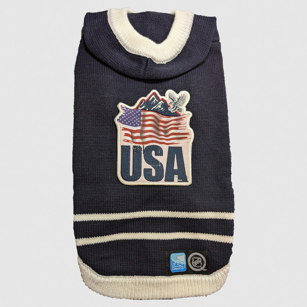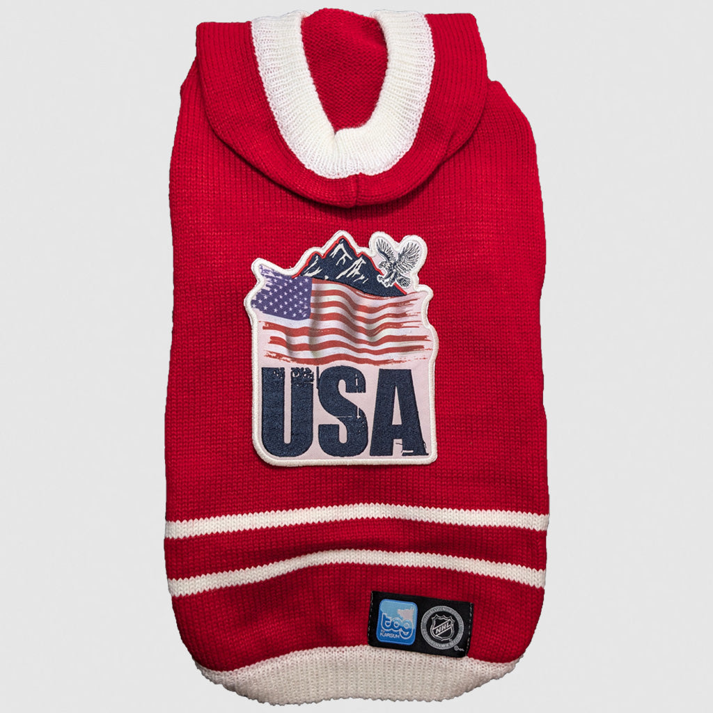 TogpetwearWhen the weather turns cool, your dog will be warm and cozy in their USA pet sweater. Ruggedly stylish, your pet will be ready for all occasions calling for American spirit. Whether it's celebrating July 4th or showing support for American athletes, this sweater is the perfect wardrobe essential for every occasion.